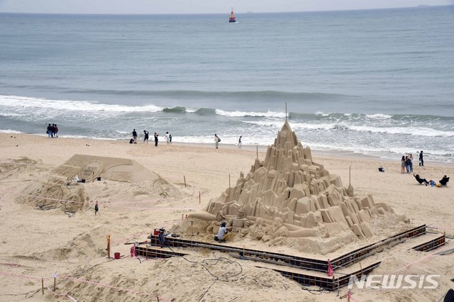 【부산=뉴시스】 하경민 기자 = 19일 오후 부산 해운대해수욕장에서 국내외 예술가들이 다양한 모래조각 작품을 제작하고 있다.