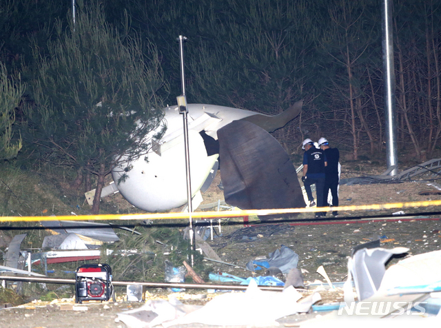 【강릉=뉴시스】김경목 기자 = 경찰과 관계기관 관계들이 지난 23일 오후 강원 강릉시 대전동 과학산업단지 내 강원테크노파크 강릉벤처1공장 뒤편 수소탱크 3기 폭발사고 현장에서 부서진 수소탱크를 살펴보고 있다. 2019.05.24.