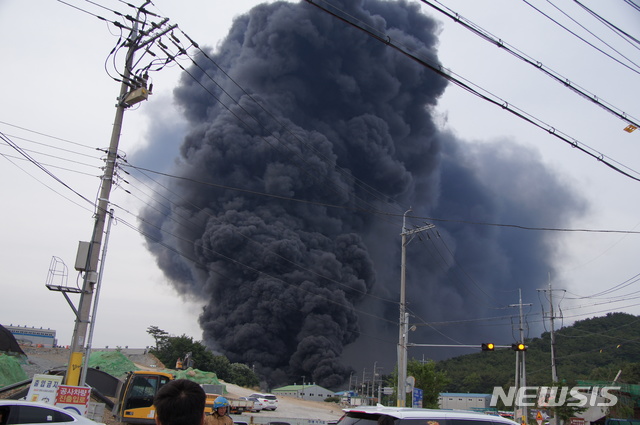 김해 공장 화재 3시간 지나도 유독성 연기 치솟아