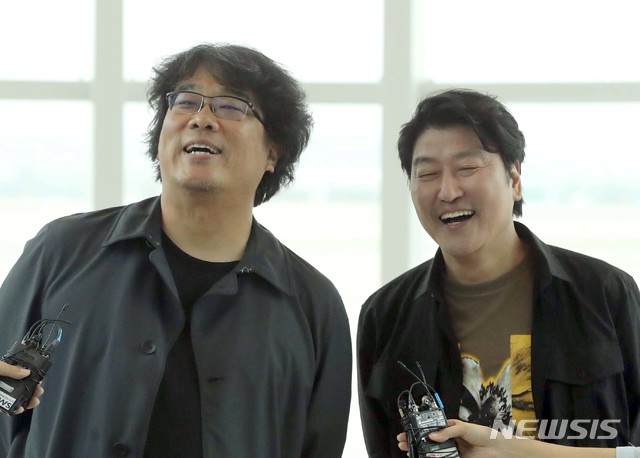 【인천공항=뉴시스】추상철 기자 = 영화 '기생충'으로 칸 영화제에서 황금종려상을 받은 봉준호 감독이 27일 인천국제공항에서 배우 송강호와 함께 귀국하고 있다. 2019.05.27.