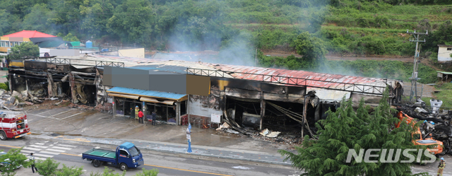 【고흥=뉴시스】변재훈 기자 = 28일 오전 4시44분께 전남 고흥군 고흥읍 한 마트에서 불이 나 소방당국에 의해 1시간 30여 분만에 꺼졌다. 이 불로 건물 실내 1496㎡가 모두 탔으나 인명피해는 없었다. 2019.05.28. (사진=전남 고흥소방 제공)