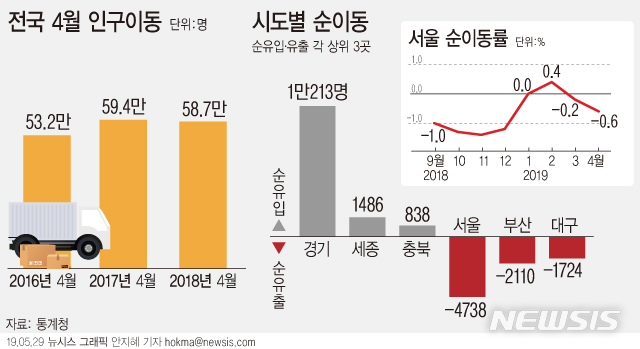 [그래픽]4월 국내인구이동 58만7000명