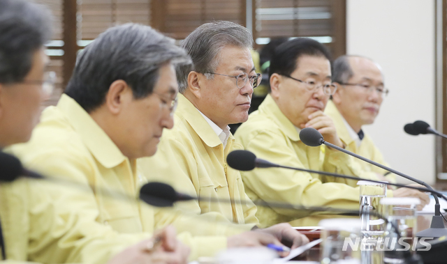 【서울=뉴시스】전신 기자 = 문재인 대통령이 30일 청와대 여민관에서 열린 헝가리 유람선 사고 관련 관계장관 대책회의에서 심각한 표정으로 보고를 받고 있다. 2019.05.30. (사진=청와대 제공)
