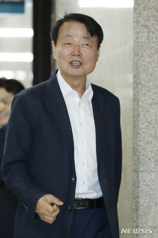 【서울=뉴시스】최동준 기자 = 한선교 자유한국당 사무총장이 3일 서울 여의도 국회에서 자유한국당 최고위원회의 전 회의장 앞을 지나가고 있다. 2019.06.03.