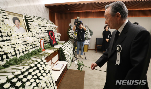 【서울=뉴시스】배훈식 기자 = 권노갑 민주평화당 고문이 11일 오후 서울 신촌 세브란스장례식장에 마련된 故 이희호 여사 빈소를 찾아 조문하고 있다. 2019.06.11.