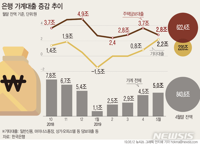[그래픽]5월 가계대출 5.7조 증가…"가정의 달 영향"