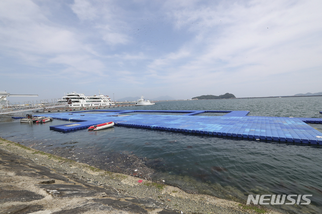 여수 바닷가에 만들어진 2019광주세계수영선수권대회 오픈워터 경기장