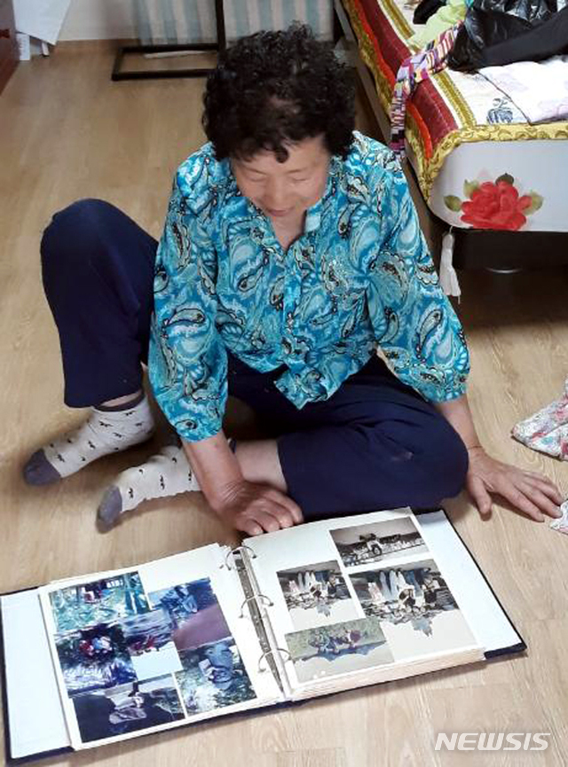【강진=뉴시스】류형근 기자 = 폴란드에서 열리고 있는 국제축구연맹(FIFA) U-20(20세 이하) 월드컵에서 맹활약을 펼치고 있는 이강인(발렌시아) 외할머니 김영례(86)씨가 경기를 이틀 앞둔 14일 전남 강진군 성전면 처인마을자택에서 사진첩을 들여다 보고 있다. 2019.06.14 (사진=처인마을 이장 제공)