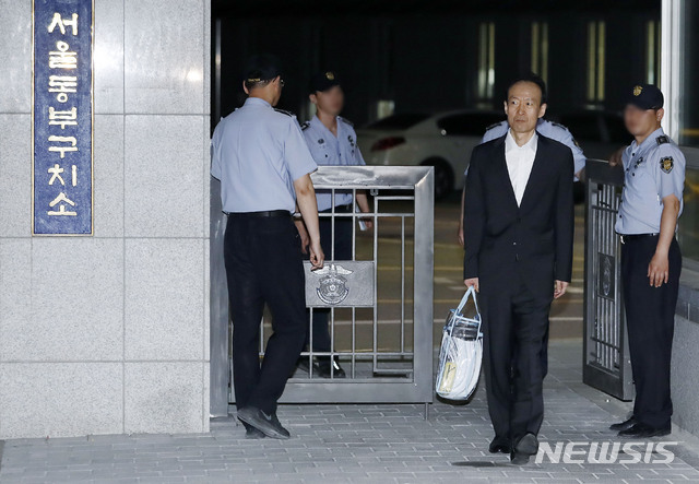 【서울=뉴시스】최동준 기자 = 이재만 전 청와대 총무비서관이 23일 자정 형기 만료로 서울 동부구치소에서 석방되고 있다. 2019.06.23.
