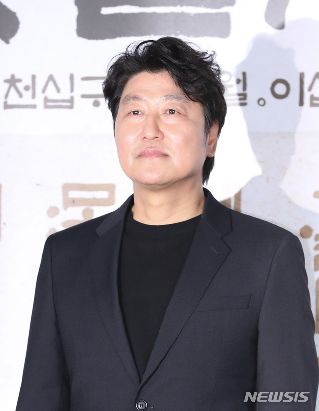 【서울=뉴시스】조수정 기자 = 배우 송강호가 25일 오후 서울 중구 메가박스 동대문에서 열린 영화 '나랏말싸미' 제작보고회에서 포즈를 취하고 있다. 세종대왕과 신미스님이 만나 한글을 창제한 과정을 담은 영화 '나랏말싸미'는 오는 7월 24일 개봉한다. 2019.06.25. [email protected]