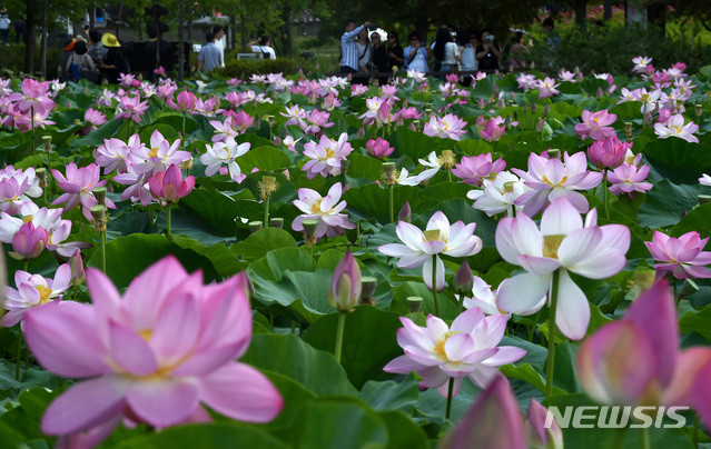 연꽃은 뛰어난 물 정화 능력을 갖춘 수생식물이다. 2019.07.07.