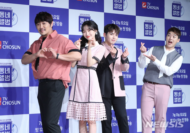 【서울=뉴시스】조수정 기자 = 가수 KCM, 그룹 러블리즈 수정, 슈퍼주니어 려욱, 배우 권혁수가 TV CHOSUN 새 예능프로그램 '동네앨범' 제작발표회가 열린 9일 오후 영등포구 여의도동 서울마리나에서 포즈를 취하고 있다. '동네앨범'은 13일 밤 12시 10분 첫 방송된다. 2019.07.09. [email protected]