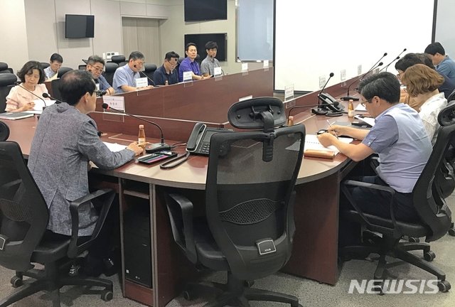 【옥천=뉴시스】이성기 기자 = 15일 오전 충북 옥천군청 재난안전상황실에서 옥천군 관련 부서와 관계기관이 참여한 가운데 박승환 옥천부군수 주재로 여름철 폭염 대책 간담회를 열고 있다.2019.07.15.(사진= 옥천군 제공)