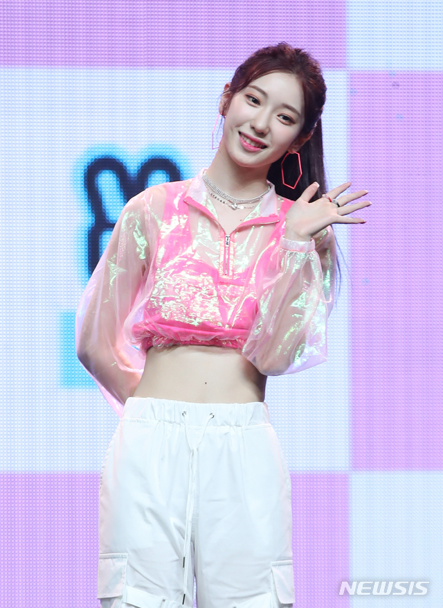 【서울=뉴시스】조수정 기자 = 신인 걸그룹 '로켓펀치' 수윤이 7일 오후 서울 광장동 예스24라이브홀에서 첫번째 미니앨범 핑크 펀치 발매 기념 언론 쇼케이스를 열고 포즈를 취하고 있다. 2019.08.07. [email protected]