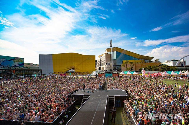 【서울=뉴시스】 김진아 기자 = 지난 10일 인천 중구 파라다이스시티(PARADISE CITY) 컬처 파크에서 열린 '2019 워터밤 인천 페스티벌'에서 관객들이 공연을 즐기고 있다. 2019.08.11. (사진=파라다이스시티 제공)