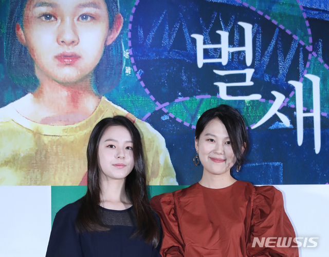 【서울=뉴시스】조수정 기자 =  영화 '벌새' 배우 박지후, 김새벽(오른쪽)이 14일 오후 서울 이촌동 CGV용산아이파크몰에서 열린 언론시사회에서 포즈를 취하고 있다. '벌새'는 전세계 영화제에서 25관왕을 석권한 영화로 1994년 가장 보편적인 소녀 은희의 이야기다. 29일 개봉한다. 2019.08.13. [email protected]