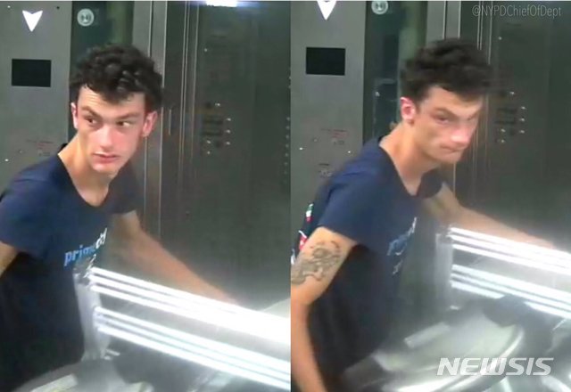 【뉴욕=AP/뉴시스】뉴욕경찰이 배포한 사진으로 16일(현지시간) 뉴욕 맨해튼 남부 풀턴 지하철역에서 한 남성이 압력밥솥을 꺼내는 모습. 경찰이 이날 맨해튼 일대에서 발견한 수상한 압력밥솥 3개는 폭발물이 아닌 것으로 확인됐다. 2019.08.17