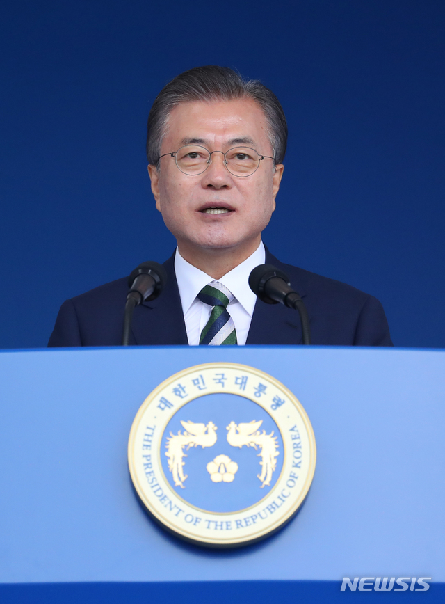 【충주=뉴시스】전신 기자 = 문재인 대통령이 23일 충북 충주 중앙경찰학교 대운동장에서 열린 296기 졸업식에서 축사하고 있다. 2019.08.23. [email protected]