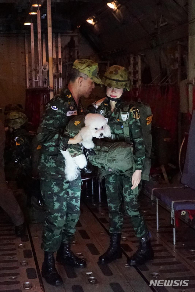 【방콕=태국왕실.AP/뉴시스】태국 왕실이 마하 와찌랄롱꼰 국왕(라마 10세)의 배우자 시니낫 웡와치라파크디의 일상을 담은 사진을 이례적으로 홈페이지에 26일 공개했다.와찌랄롱꼰 국장은 지난 5월 즉위 및 수티다 왕비와의 재혼 2달만인 7월에 시니낫 웡와치라파크디에게 후궁격인 '왕의 배우자'란 호칭을 부여했다. 촬영 날짜가 공개되지 않은 이 사진은 군용기 내부로 추정되는 공간에서 군복을 입은채로 대화 중인 라마 10세와 웡와치라파크디. 2019.08.27