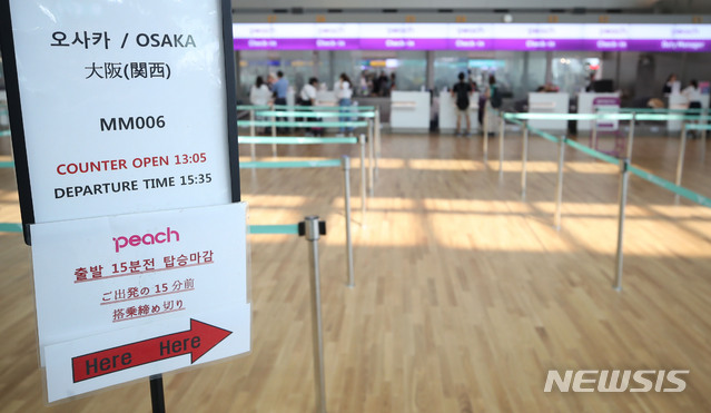 사진은 28일 오전 인천국제공항 1터미널 오사카행 피치항공 체크인 카운터가 비교적 한산하다. 2019.08.28.