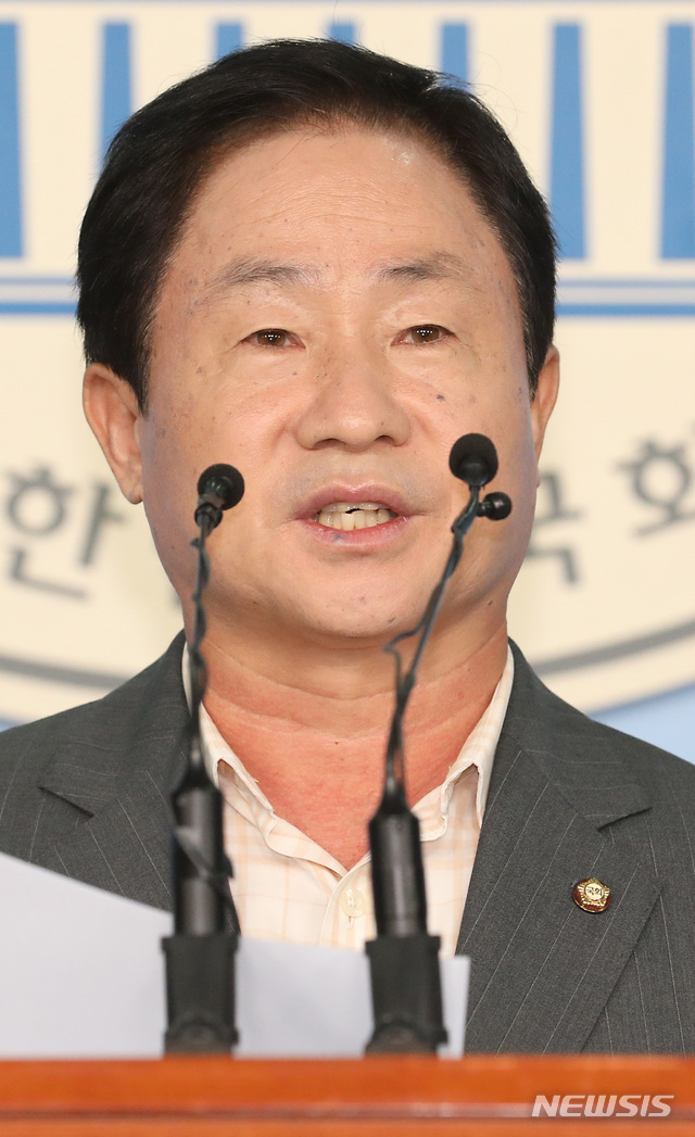 【서울=뉴시스】이종철 기자  = 1일 서울 여의도 국회 정론관에서 자유한국당 주광덕 의원이 조국 법무부장관 후보자 딸의 입시비리 의혹과 관련 제보 받은 내용을 설명하고 있다. 2019.09.01.