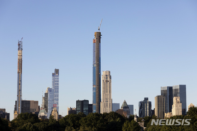 【뉴욕=AP/뉴시스】17일(현지시간) 미국 뉴욕에서 세계 최고(472m) 주거용 아파트 '센트럴파크 타워'가 건설되고 있다.