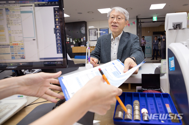 【서울=뉴시스】최기영 과학기술정보통신부 장관이 20일 오전 세종특별자치시 정부세종청사 NH농협은행을 방문해 필승코리아 펀드를 가입하고 있다. 2019.09.20. (사진=과학기술정보통신부 제공)