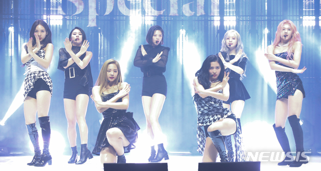 【서울=뉴시스】조수정 기자 = 걸그룹 트와이스가 23일 오후 서울 광장동 예스24 라이브홀에서 열린 미니 8집 '필 스페셜(Feel Special)' 발매 쇼케이스를 열고 타이틀곡 필 스페셜을 선보이고 있다. 왼쪽부터 나연, 채영, 쯔위, 정연, 모모, 다현, 사나. 2019.09.23. [email protected]