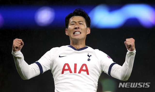 【런던=AP/뉴시스】토트넘의 손흥민이 1일(현지시간) 영국 런던의 토트넘 홋스퍼 스타디움에서 열린 2019~2020 유럽축구연맹(UEFA) 챔피언스리그 바이에른 뮌헨(독일)과 경기 중 전반 12분 선제골을 넣고 환호하고 있다.