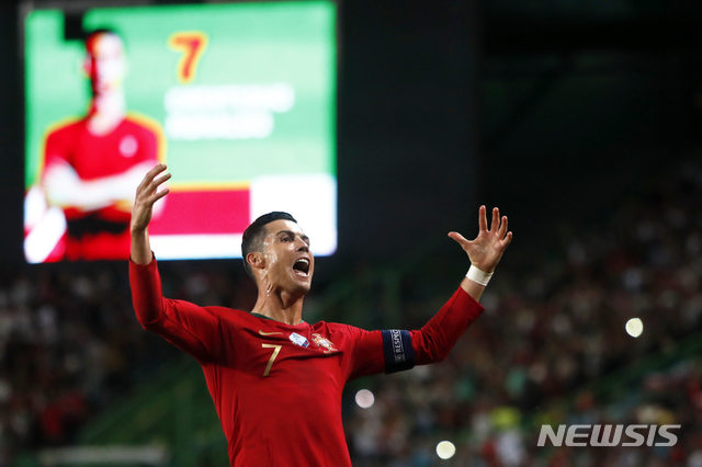 호날두는 후반 20분 팀의 두 번째 골을 터트려 통산 699호 골을 기록했으며 포르투갈은 3-0으로 승리했다. 2019.10.12.