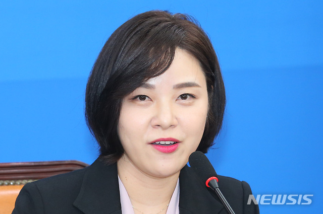 【서울=뉴시스】이종철 기자 = '이수혁 의원이 주미대사에 임명되면서 의원직을 승계 받은' 정은혜 의원이 15일 서울 여의도 국회에서 열린 더불어민주당 원내대책회의-상임위간사단 연석회의에서 인사말을 하고 있다. 2019.10.15.