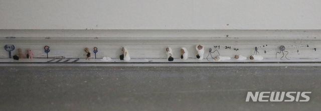 【과천=뉴시스】조수정 기자 = 국립현대미술관 50주년 기념전 '광장:미술과 사회 1900-2019' 언론 사전공개 행사가 열린 16일 경기 과천시 국립현대미술관 과천관에서 함진 작가의 '틈새인간들'이 벽면과 바닥 사이에 전시돼 있다. 국립현대미술관 50주년 기념전 '광장:미술과 사회 1900-2019'는 한국 미술 100년을 조명한다. 덕수궁관과 서울관에서 2020년 2월9일까지, 과천관에서 2020년 3월 29일까지 열린다. 또 개관기념일인 10월 20일 덕수궁·과천·서울·청주 4관을 무료 개방한다. [email protected]