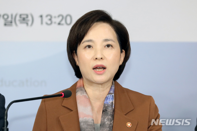 【서울=뉴시스】김병문 기자 = 유은혜 사회부총리 겸 교육부 장관이 7일 오후 서울 종로구 정부서울청사에서 고교서열화 해소 및 일반고 교육역량 강화 방안 발표를 하고 있다. 2019.11.07.