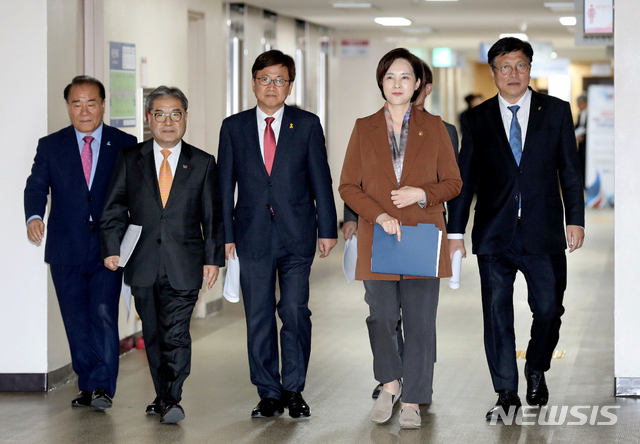 【서울=뉴시스】김병문 기자 = 유은혜 사회부총리 겸 교육부 장관과 교육감들이 7일 오후 서울 종로구 정부서울청사에서 고교서열화 해소 및 일반고 교육역량 강화 방안 발표에 앞서 고개 숙여 인사하고 있다. 2019.11.07.