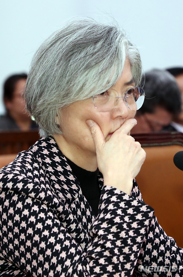 【서울=뉴시스】이종철 기자  = 강경화 외교부 장관이 7일 오후 서울 여의도 국회에서 열린 외교통일위원회 전체회의에 출석하여 심각한 표정을 하고 있다. 2019.11.07.