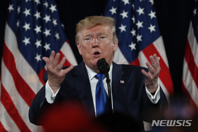【애틀랜타=AP/뉴시스】도널드 트럼프 미국 대통령이 8일(현지시간) 미 조지아주 애틀랜타의 한 선거 유세장에서 연설하고 있다. 트럼프 대통령은 앞서 조지아로 떠나기 전 백악관에서 기자들에게 대중국 관세를 철회하는 데 합의한 사실이 없다고 밝혔다. 트럼프 대통령은 "중국은 관세 철회를 바라겠지만 나는 어느 것에도 합의하지 않았다"라고 말해 미·중 양국이 논의에 따라 단계적으로 관세를 철폐하기로 합의했다는 중국 상무부의 지난 7일 발표를 부인하려는 의도로 보여진다. 2019.11.09.