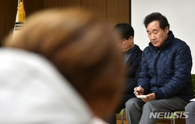 【대구=뉴시스】이무열 기자 = 이낙연 국무총리가 16일 오전 대구 달성군 강서소방서에서 독도 소방구조헬기 추락사고 실종자 가족 대기실을 찾아 면담하고 있다. 2019.11.16. [email protected]