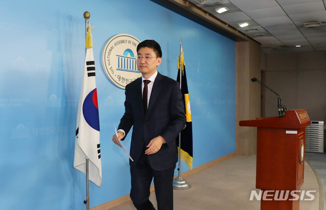【서울=뉴시스】 장세영 기자 = 김세연 자유한국당 의원이 17일 오전 서울 여의도 국회 정론관에서 긴급기자회견을 열고 총선 불출마 선언 후 회견장을 나서고 있다. 2019.11.17.