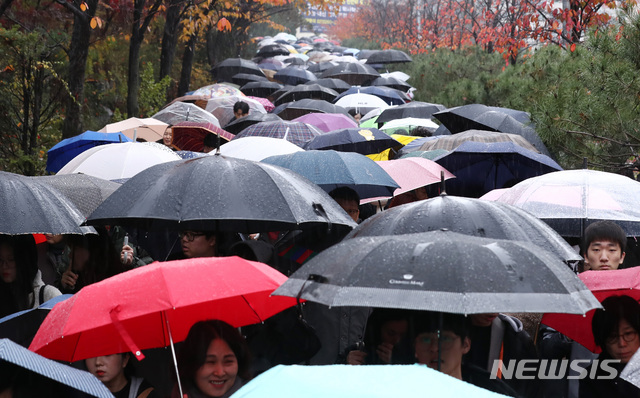 【서울=뉴시스】이영환 기자 = 동국대학교 논술고사에 응시한 수험생들이 17일 오후 서울 중구 동국대학교 서울캠퍼스에서 고사를 마친 후 학교를 나서고 있다. 2019.11.17.