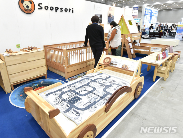 [수원=뉴시스] 김종택 기자 = '베페마켓 박람회'가 열린 28일 오후 경기 수원시 영통구 수원컨벤션센터에서 관람객들이 전시된 유아용품을 살펴보고 있다. 2019.11.28.