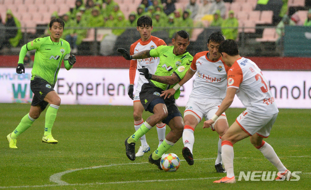 [전주=뉴시스] 김얼 기자= 전북현대모터스 로페즈 선수가 1일 전북 전주시 전주월드컵경기장에서 열린 하나원큐 K리그1 2019 전북현대모터스와 강원FC의 경기에서 돌파를 시도하고 있다. 2019.12.01.