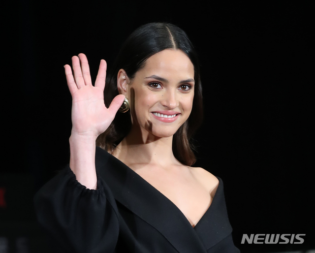 [서울=뉴시스]조수정 기자 = 배우 아드리아 아르호나가 내한, 2일 오전 서울 종로구 포시즌스호텔에서 열린 넷플릭스 영화 '6언더그라운드' 월드 프리미어 제작보고회에서 포즈를 취하고 있다. 2019.12.02. [email protected]