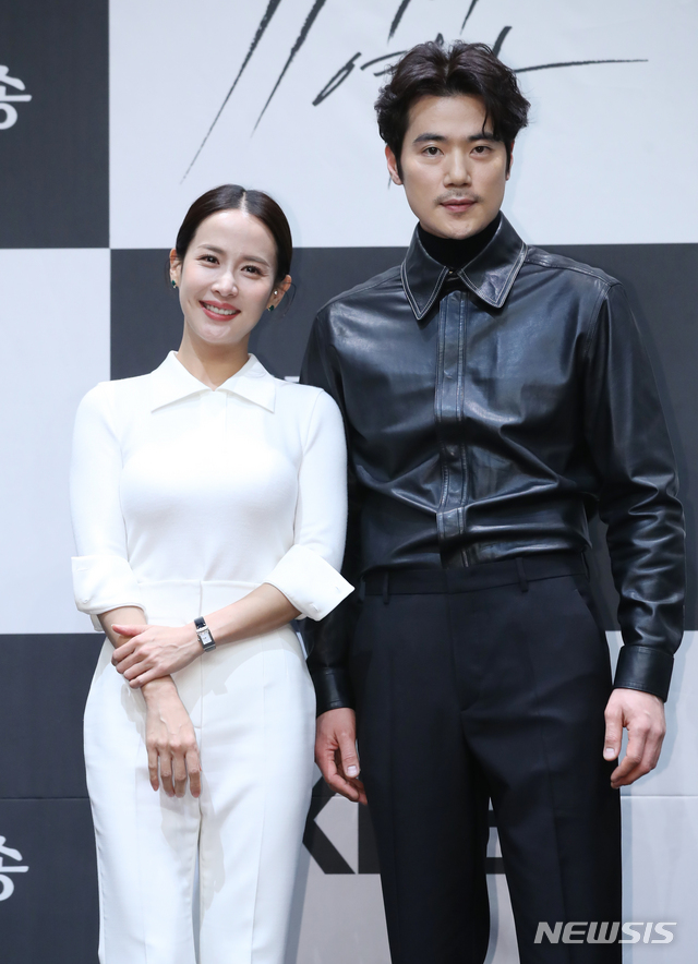 [서울=뉴시스]조수정 기자 = KBS 2TV 수목미니시리즈 '99억의 여자' 배우 조여정, 김강우(오른쪽)가 3일 오후 서울 라마다신도림서울호텔에서 열린 제작발표회에서 포즈를 취하고 있다. '99억의 여자'는 12월 4일 밤 10시 첫방송한다. 2019.12.03. [email protected]