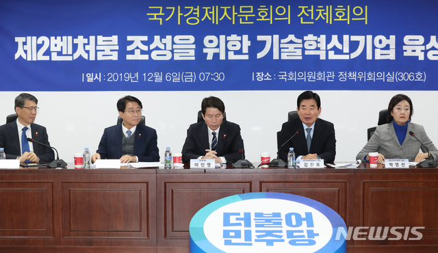 [서울=뉴시스] 고승민 기자 = 김진표 민주당 국가경제자문회의 의장이 6일 서울 여의도 국회 의원회관에서 열린 '제2벤처붐 조성을 위한 기술혁신기업 육성방안' 국가경제자문회의 전체회의에서 발언하고 있다. 2019.12.06.