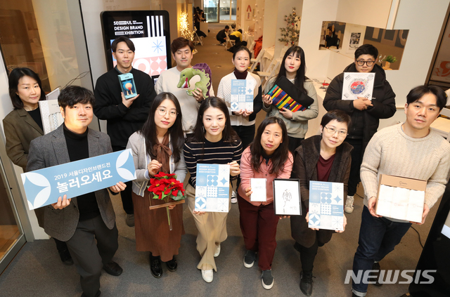 [서울=뉴시스] 전진환 기자 = 20일 오전 2019 서울디자인브랜드전이 열린 서울 동대문디자인플라자(DDP)에서 참가 디자이너들이 직접 디자인한 제품을 들고 포즈를 취하고 있다. 2019.12.20.