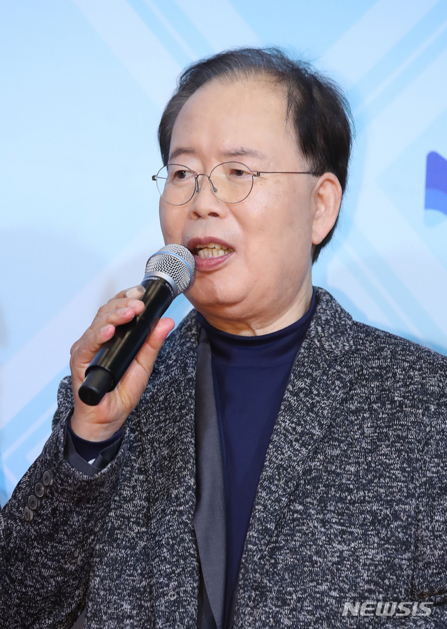 [서울=뉴시스]조수정 기자 = 2019 MBC 방송연예대상 시상식이 열린 29일 오후 서울 상암동 MBC미디어센터에서 '놀면뭐하니' 작곡가 정경천이 레드카펫으로 들어서며 인사하고 있다. 2019.12.29. [email protected]