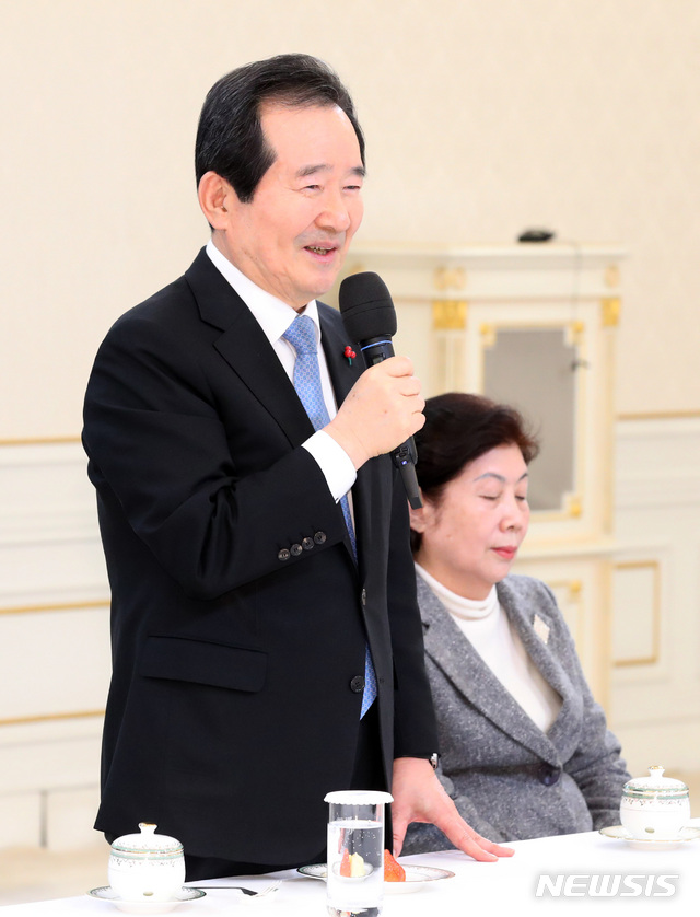 [서울=뉴시스]박영태 기자 = 정세균 신임 국무총리가 14일 청와대 본관에서 문재인 대통령으로부터 임명장을 받은 후 환담장으로 이동해 발언하고 있다. 2020.01.14. [email protected]
