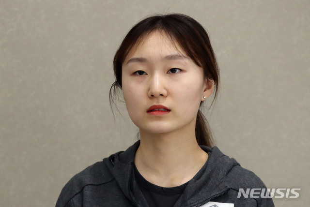 [인천공항=뉴시스]박미소 기자 = 쇼트트랙 최민정이 캐나다 몬트리올에서 열린 국제빙상경기연맹(ISU) 쇼트트랙 4대륙선수권대회를 마친 후 14일 오후 인천국제공항을 통해 입국하며 취재진의 질문에 답하고 있다. 최민정은 이번 대회에서 여자 500m, 1000m, 1500m, 3000m 슈퍼파이널, 여자 3000m 계주에서 1위를 기록해 5개의 금메달을 차지했다.2020.01.14.