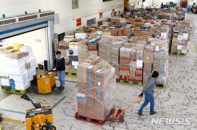 [제주=뉴시스]우장호 기자 = 민족 최대명절인 설을 나흘 앞둔 21일 오후 제주시 노형동 제주우편집중국에서 직원들이 전국에서 배송된 명절 소포와 택배 우편물을 배달하기 위해 분류작업을 하고 있다. 2020.01.21.