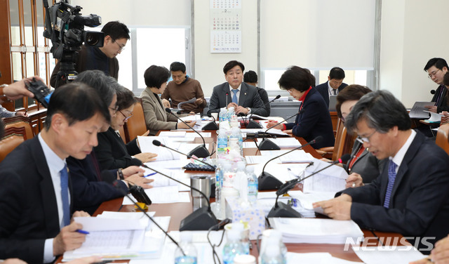 [서울=뉴시스] 김진아 기자 = 기동민 보건복지위원회 소위원장이 19일 서울 여의도 국회 보건복지위원회 소회의실에서 보건복지위 법안심사소위원회를 주재하고 있다. 2020.02.19.